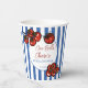 Ciao baby Little tomato blue stripes Italian bridal shower personalized paper cups, farmers market bridal shower printed paper cups, Italian bridal shower personalized table decor, cherry tomato bridal shower paper cups, hand drawn tomatoes , grand millennial bridal shower party supplies