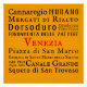 Sehenswürdigkeiten von Venedig in Vintager Typografie, schwarzer Text auf orangefarbenem Hintergrund mit rotem Akzent. Eine großartige Ergänzung zu Ihrer Einrichtung, die Zuhause die wunderbare Atmosphäre der Straßen von Venedig.