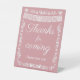 Elegant Blush Pink baby shower table sign featuring delicate white papel picado banner details and ornamental floral accents. This “Thanks for Coming – Please Take One!” sign is perfect for favor tables, dessert stations, or gift areas at a Cielito Lindo or Mexican-inspired baby shower. Soft Blush Pink background with white decorative frame creates a timeless, charming look suitable for baby showers or gender-neutral celebrations. Ideal as a tabletop display sign for party favors, treat bags, or keepsake stations.