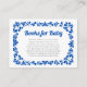 Celebrate your upcoming arrival with this 'Books for Baby' enclosure card, featuring a striking blue floral wreath design. This card gently requests guests to bring a book to help build baby's first library, making it a thoughtful alternative to traditional cards. The detailed blue botanical border adds a touch of classic elegance to the message, which invites guests to share a special note within the book. It's a wonderful way to collect meaningful literary gifts and create lasting memories for your growing family.