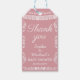 Dieses elegante Cielito Lindo-Babyshower-Dankeschön-Tag enthält zarte weiße Papel-Picado-Girlanden und ornamentale Blumengrenzen auf einem weichen blassrosa Hintergrund. Die elegante Schrift-Typografie verleiht einen zeitlosen Touch und macht es perfekt für eine klassische oder mexikanisch inspirierte Babyshower-Feier.