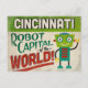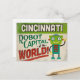 Eine lustige Cincinnati Ohio Vintage Reise-Postkarte mit einem freundlichen Roboter mit lustigem Retro-Stil-Text, der sagt: "Cincinnati, Roboter-Hauptstadt der Welt!"