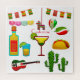 Verschiedene mexikanische Speisen und Getränke, um Cinco de Mayo zu feiern, um durch den Wechsel zu Ihrem Namen in einer beliebigen Hintergrundfarbe