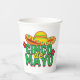 Diese Teller von Cinco de Mayo sind mit einem großen gelben Sombrero versehen, der in einem grünen Schriftart mit Dekoration "cinco de mayo" steht.