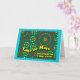 Cinco de Mayo für Schwester, Papiergrusskarte. Digitales Kunstdesign mit bunten geometrischen Mosaikmustern. Gerahmt in türkisfarbener Farbe. Der Text auf dem Cover ist hellgelb. Inside message kann geändert werden / personalisiert. Bild und Vers © Shoaff-Ballanger Studios.