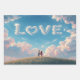 Epic love stories deserve epic wrapping. This cinematic design features a couple standing on a grassy hill, gazing at a majestic sky where clouds have formed the word "LOVE." The warm sunset hues and vast landscape convey a sense of "forever." It is the perfect choice for significant milestones—proposals, engagements, or celebrating a deep, long-term bond