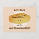 Postkarte mit einem lächelnden, Zimtwalze, die zwischen den Worten "Lass’s Rock and Cinnamon Roll!" stehend ist. Die Wörter können angepasst werden.