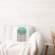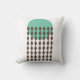 Dieses Kissen hat ein modernes Design Mitte des Jahrhunderts mit einem meergrünen Kreis mit braunen Diamantenketten.