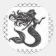 Schwarz-Weiß-Meerjungfrau-Logo mit Scales. Aufkleber in Form eines Kreises.