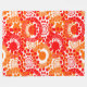 Diese große Fleecedecke hat ein Design von Kreisen mit Linien und Kreise aus wiederholten Punkten in rot und orange dekoriert.