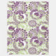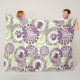 Diese große Fleecedecke hat ein geometrisches Design von Kreisen mit Linien und Kreisen aus wiederholten Punkten in Auberginen und Grün dekoriert.