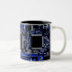 Modernes Design mit einem nahen Aufbau einer PC-Platine in Blau, Schwarz und Weiß. Tasse mit individualisierbarem Design für Sie, um Ihre eigenen Texte, Bilder und Ideen zu personalisieren. Erstellt mit einem Originalfoto und digitalen Techniken von Jess Perry.