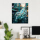 A playful circuit otter glides through a futuristic harbor stream, built from sleek waterproof plating, glowing whisker lines, and luminous streamlined contours. Cyan, silver, teal, and amber tones shimmer across its agile body as water splashes in motion. Floating docks, harbor lights, moored vessels, reflective canals, soft rain, and skyline towers create a lively urban waterscape. This charming aquatic design blends fun personality with modern technology, perfect for bedrooms, offices, kids spaces, and gifts for otter lovers.