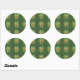 "Circular sticker design featuring a repeating pattern of stylized trees with lush green leaves and small red fruits on a dark background. The vibrant, symmetrical design evokes a sense of nature and harmony. Five stickers are shown in a grid below the main image."