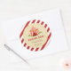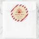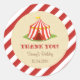 Rundaufkleber für Geburtstagsparty mit Zirkuszelt-Design und roter Farbkombination.
