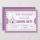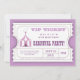 Ein Spaßentwurf in Form einer VIP-Aufnahmekarte, in girly Lila, kennzeichnet einen niedlichen Elefanten auf dem Zirkuszelt der großen Spitze und enthält das ganzes Ereignisinfo in einem einfachen, Format besonders anzufertigen. Eine große Weise, die Aufregung Ihrer Gäste aufzubauen, da sie den Spaßkarneval oder themenorientierte die Geburtstagsfeier des Zirkusses vorwegnehmen, die für Ihre Tochter geplant wird!
