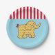 Ein niedlicher, gelber Zirkuselefant schmückt diese Teller aus Papier. Diese Teller sind ideal für einen Geburtstag, eine Geburtstagsfeier, eine Babydusche, ein Zirkusthema, ein Karnevalthema, Kinder, Kinder, usw....Das Design stammt aus der Originalkunst.