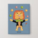 Circus Juggling Lion Kid Blue Button with Name