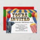 Circus Karneval Cheer Custom Invitations, Big Top Design mit Zirkuszelt, Elefanten, Popcorn und Ballons in hellgrün, rot, gelb und blau. Passen Sie Ihre Party-Informationen an. Eine großartige, einzigartige Party Einladung für den Geburtstagsjungen, das Mädchen oder jeden Anlass! Spaß Design mit Informationen über das Party.