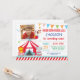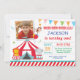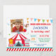 Circus Karneval Geburtstagsparty Einladung mit individuellem Foto. Junge 1. Geburtstag Einladung. Zirkusthematisches Party. Weißer Hintergrund. Für weitere Anpassungen klicken Sie bitte auf die Schaltfläche "Anpassen" und verwenden Sie unser Designwerkzeug, um diese Vorlage zu ändern.