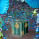 Vintage grunge bedrückte Zirkus-Gastgeschenk-Boxen in Akzenten von aquamarin und Gold.
