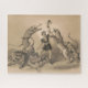 Vintager Ausdruck eines männlichen Zirkusdarstellers, der von einem Löwen, einem Tiger, zwei Wölfen und einem Leopard stehend ist; er hält ein großes Stück Rindfleisch mit seiner links Hand, um 1872