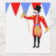 Charmanter, handgezeichnet und farbiger Circus Ring Master in einem roten Schwanz-Mantel, bräunliche Jodphurs und schwarze Top-Hut und Stiefel nehmen den Mittelring bei einer roten, gelben und blauen Circus-Themenabend ein