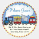 Farbenfrohe Zirkusbahn mit Affen und Elefanten. Passen Sie Text als Adressticker an oder fügen Sie eine spezielle Nachricht für Favoriten hinzu.