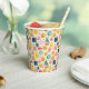 This vibrant variation of the geometric mosaic features a sunny and warm palette of golden yellow, burnt orange, and deep navy watercolor shapes. The hand-painted triangles, hexagons, and circles are scattered across a warm cream-textured background, accented by shimmering gold glitter dots and diagonal metallic streaks. It is a bright and sophisticated choice for celebratory events, creative workspace supplies, or modern, gender-neutral party decor.
