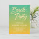 Die Party Einladung des Citrus Beach weist einen grünen und hellorangen Farbverlauf auf, der mit dem Wort "Beach Party" in einem trendigen Pinselskript-Schriftart einen subtilen Grunge-Look hat. Die lebhaften Farben der Zitrusfrüchte laden zum Geburtstag, Jubiläum oder zum Feiern am Strand ein. Personalisieren Sie diese Einladung, indem Sie den Platzhaltertext in der Vorlage ersetzen. Für weitere Optionen, wie zum Beispiel den Schriftart zu ändern und seine Größe, klicken Sie auf die Schaltfläche "Anpassen". *Bitte beachten Sie, dass das Zazzle-Wasserzeichen in der Zoomvorschau NICHT auf dem gedruckten Endprodukt © Rosewood and Citrus erscheint