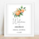 Party zum Thema Wasserfarbenzitrus Brautparty mit Aquarellbildern von Orangen auf einem Baumzweig. Elegante Kalligraphie-Handschrift, ideal für Frühjahr-, Sommer- oder Herbsthochzeiten. Matching-Elemente verfügbar.
