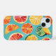 Dieses Kunstwerk präsentiert ein lebendiges und erfrischendes Muster von Zitrusfrüchten mit lebhaften Orangen-, Zitronen-, Limetten- und Grapefruitschnitten vor einem hellen türkisfarbenen Hintergrund. Die saftigen, farbenfrohen Fruchtscheiben sind mit einem spielerischen und stilvollen Ansatz dargestellt, der das Wesen der Sommerzeit und Frische einnimmt. Die Verwendung feiner, kontrastierender Farben und die kreisförmige Anordnung der Früchte schaffen eine dynamische und auffällige Komposition, die Energie und Wucht ausstrahlt.