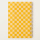 A vibrant orange and beige checkerboard pattern with alternating bright and muted squares, creating a lively and symmetrical design with a warm, energetic tone.