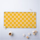 A vibrant orange and beige checkerboard pattern with alternating bright and muted squares, creating a lively and symmetrical design with a warm, energetic tone.