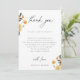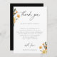 Aquarellfarben Citrus Orange und Floral zeitgenössischer Chic Minimalistisch, Hochzeitsempfang danke Ihnen Tischkarte. Template bietet mehrere Zeilen für Ihre individuelle Danksagung Nachricht. Features, schwarze Typografie zur Koordination von schwarz-weiß Hintergrund.
