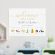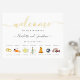 Moderne Lemon und Orangen Aquarell Zitrusfrüchte Hochzeit Begrüßung Timeline Zeichen. Einzigartige Aquarellmalung von Orangen und Orangensegmenten mit grünem Blattwerk und gelben Zitronen auf einem Zweig mit Grünflächen und Zitronensegmenten. Einfach zu gestylte dunkelgraue Typografie-Skript mit dem Namen der Braut und der Bräuche, dem Hochzeitstag und Ihrer eigenen Begrüßungsbotschaft anpassen. Original-Kunstwerk von Catherine Sweetman