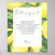 Aquarellfarbene Zitruskarte zum Thema Zitrusfrüchte Brautparty mit Aquarellbildern von Zitronenmuster und Grünzweig. Elegante Kalligraphie-Handschrift, ideal für Frühjahr-, Sommer- oder Herbsthochzeiten. Matching-Elemente verfügbar.