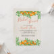 Brautdusche Einladung mit frischen Zitrusorangen, Orangenblüten und Grünpflanzen. Das Design wird mit dem Titel "Brautparty" versehen und der Rest ist vollständig editierbar. Ein köstliches Aquarelldesign auf natürlichem Vintagem Hintergrund mit eleganter Schriftzeichen-Typografie.