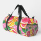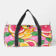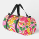 This duffle bag features a vibrant citrus design with glossy slices of grapefruit, lemon, and orange arranged against a playful pink background with white polka dots. Fresh green leaves add a lively contrast, creating a cheerful, sunny look that stands out beautifully in travel settings, at the gym, or on weekend getaways. Spacious, durable, and lightweight, this bag offers plenty of room for clothing, accessories, and essentials while adding a bold, uplifting aesthetic to every journey. Practical yet full of personality, it brings a refreshing burst of color wherever you go.