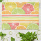 Küchenhandtuch mit Zitronenscheiben, Limetten, Orangen und Grapefruits und einem Band aus Zitrusfrüchten in den gleichen Farben. Eine lustige Ergänzung zu Ihrer sommerlichen Küche Dekoration oder geben Sie als Geschenk.