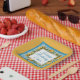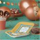 Die Teller aus hübschem Party sind mit blauen marokkanischen Fliesen mit einem orangen Zitrusrahmen in Aquarelltönen gestaltet. Stellen Sie sich das Zentrum für Geburtstage und andere Feiern zusammen.