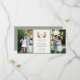Citrus Orangen und Grün monogramm Wappen, Hochzeit speichern Sie das Datum Foto-Karte. Elfenbeincreme und rustikale Salbeigrün Hintergrund und Rahmen Farben, 2 vertikale Bildvorlagenräume.