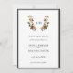 Citrus Orangen und Grün monogramm Wappen, Hochzeit speichern Sie das Datum Karte. Schwarz-Weiß-Hintergrund und Rahmenfarben.