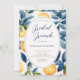 Zitrusfarben und Party-Hinweise: eine Geschichte der Liebe, die in einem Zitronen- und Orangenhain geschrieben ist, mit einem Farbschema inspiriert, das von einem mediterranen blauen Fliesenmuster. Diese Einladung fasst das Wesen dieser süßen Erzählung zusammen und lädt Sie ein, die Entdeckung der Liebe durch die Braut zu feiern und ein helles und sonniges Brautparty zu genießen. Entdecken Sie ein Brautparty zum Thema Zitrusfrüchte, das Wärme und Wärme ausstrahlt. Eine trendige und moderne Aquarellillustrierung von Zitronen, Orangen und Grapefruits mit blauen Blätter bildet den Hintergrund für diese elegante und moderne boho chic citrus themed Brautparty Brunch Einladung. Elegante Kalligraphie rundet dieses einzigartige Design ab, das sich perfekt für ein Frühling- oder Sommerfest, ein Party im Garten, ein festliches Hallenfest oder ein schlichtes Party eignet.
