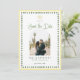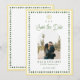 Announce your celebration with this yellow and green coastal save the date featuring a warm photo area, a soft arch frame, and subtle seaside touches like seashell and geometric borders. Perfect for couples planning a beach wedding or sun-filled destination day, this cheerful coastal style blends relaxed tropical charm with a bright, welcoming look for your countdown.