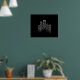 Poster mit schwarzem Hintergrund und Stadtbild. Passen Sie dieses Objekt an oder kaufen Sie, wie es ist.