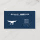 Eine Visitenkarte für Drohnenaktivitäten: Luftaufnahmen, Drohnenpiloten, landwirtschaftliche Drohne, Verleih, Stadtfotos, etc. Es kommt mit einer Silhouette einer Drohne mit einer Kamera, die über eine Skyline der Stadt fliegt. Auf der Rückseite finden wir die vollständigen Koordinaten und eine Silhouette einer Drohne.