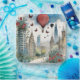 City Skyling Rose Schmetterlinge und Heißluftballo Pappteller