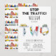 A cute hand drawn illustration of city transportation vehicles, cars, trucks on the road. A multicolored design featuring city cars, construction trucks, tractors, bus, police car, garbage truck, fire truck and much more. An ideal design for kids bedroom, playroom and nursery decor. A cute kids city transportation vehicles birthday theme design and customized gift for anyone who loves transportation, vehicles, cars, trucks and hand drawn illustrations.
