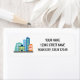 Cityscape skyline hebt das Gebäude Rücksendelabel hervor. City Real Anwesen Vermietung Business Template. Moderne Vorlage mit farbenfrohen City Skyline Wohnungen zeichnend. Ideal für Vermietungsmarkt, Architekten, Bauunternehmer, echte Anwesen-Agent, Broker, Untervermietung, Expatriate-Wohnungen, Bürowohnung, Arbeitsbereich, Handel, Einkaufszentrum und vieles mehr.